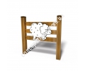 Декоративний дерев'яний елемент Інтератлетика, арт. S764.4 оснащується накладкою з Баранчиком, припаде до душі самим маленьким непосидам, вчора тільки навчилися ходити. Секція виготовлена за останніми технологіями, представлена в формі прямокутника з округленими кутами, розміри і тип малюнків змінюється. Між собою секції скручуються сталевими болтами, а ніжки вкопуються, бетонуються або прикручуються. Вага обладнання дозволяє з легкістю переносити його з місця на місце.