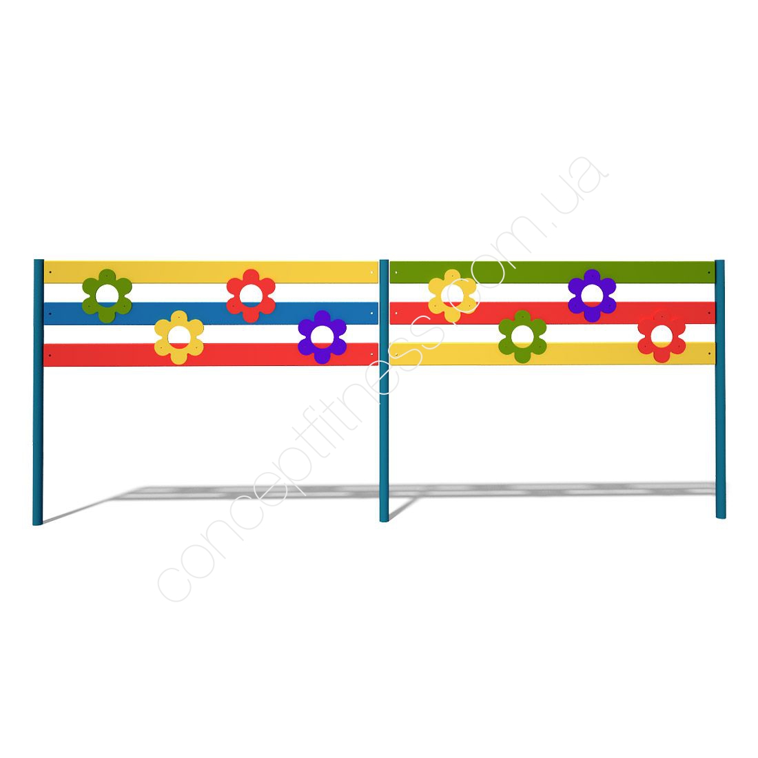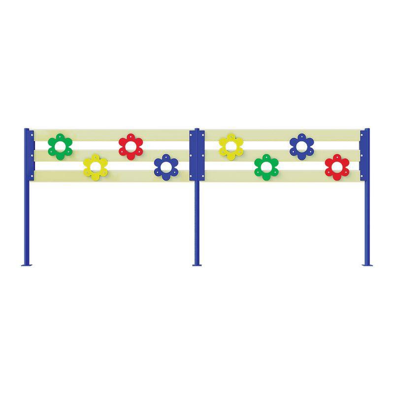 Секція огорожі InterAtletika S731 виконана за уніфікованими технологічним нормам і вимогам, скручене з декількох щільних дерев'яних дощок і сталевого підстави, пофарбована в яскраві кольори і усипана квітами. Найчастіше модель ставлять в розважальних центрах, садках, парках, садках, приватних будинках та інших громадських місцях. Небувалий стиль секції буде ідеально гармоніювати на майданчику, допоможе створити сімейний затишок, перенести дітей в казку. Секція блокує спланований і випадковий догляд дітей з захоплюючих гірок, тренажерів і комплексів.