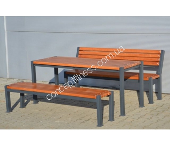 Сучасна лавка для відпочинку Подвійна лінія Інтератлетика, арт. LP006.1 проводитися з надійного, довговічного і сталевого профілю, підстава прикручується анкерами або бетонується. Подібні лавочки активно використовуються дизайнерами, встановлюється на дачах, заміських будинках, громадських дворах, біля багатоквартирних будинків, а також зустрічається в парках, алеях, ігрових майданчиках. Лавка виділяється елегантним стилем, гарною стійкістю.
