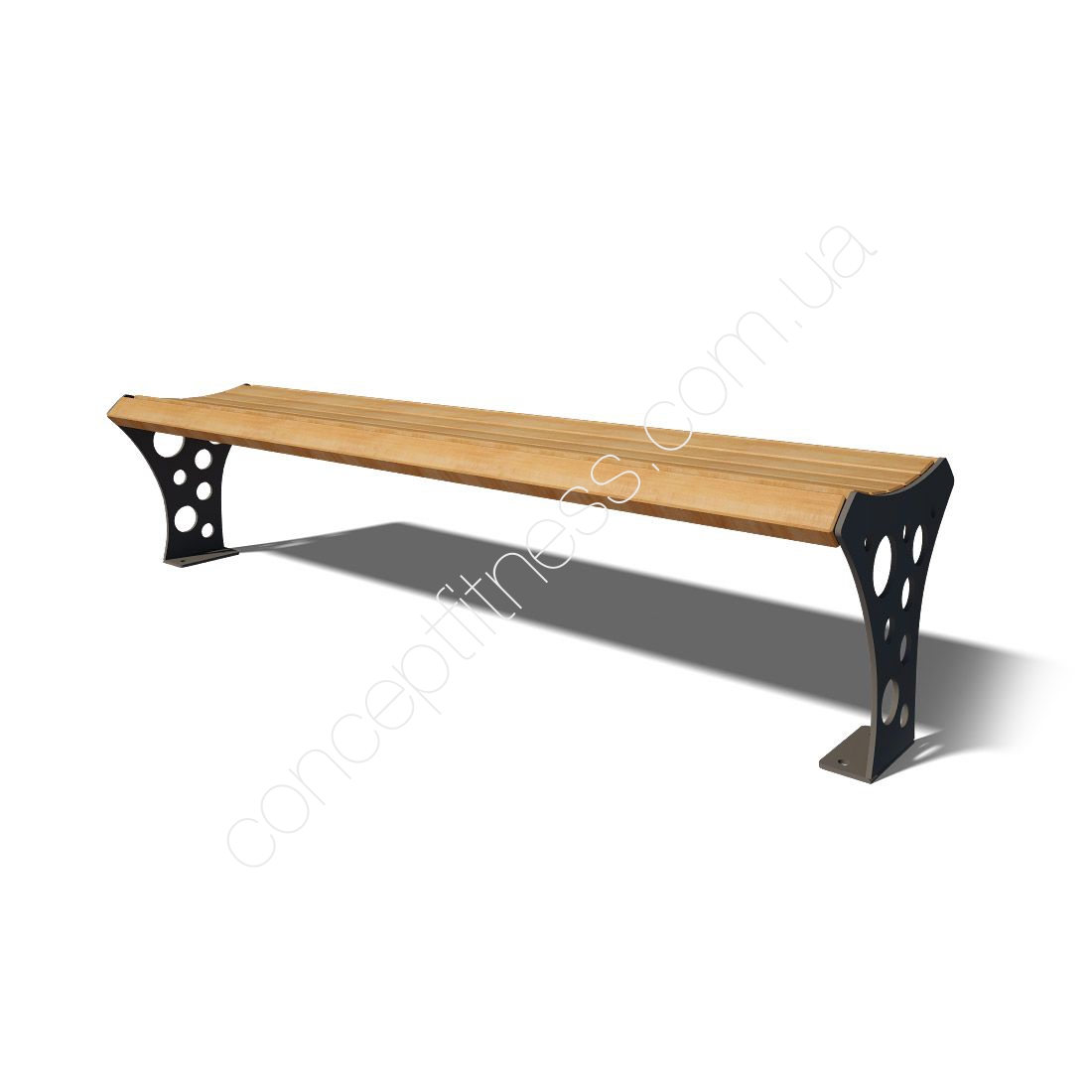 Міцна сталева лава Інтератлетика, арт. LP031 розміщується в парках, розважальних центрах, садках, школах, громадських дворах, пансіонатах і дачах. Верхня частина виконана з дерев'яних брусів, естетично і красиво лавка виглядає в будь-якому місці. Модель здатне витримати 200 кг навантаження, для оптимальної стійкості підставу прикручується сталевими анкерами, бетонується.