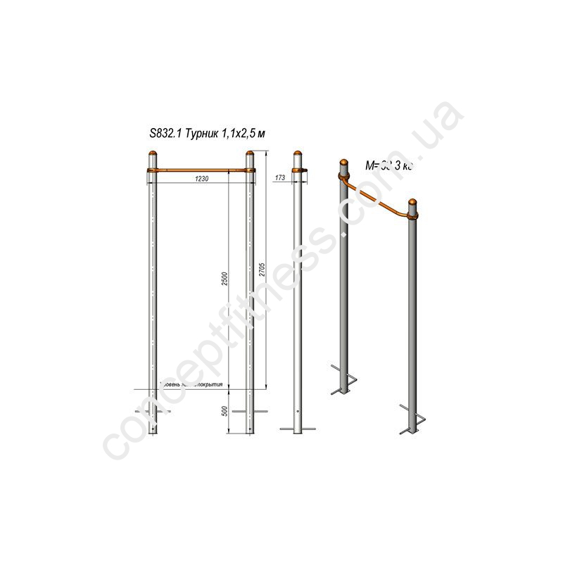 Турнік одинарний InterAtletika S832.1 встановлюється близько спортивних комплексів, тренажерних центрів, майданчиків і пансіонатів. На виробі можна здійснити безліч гімнастичних вправ і трюків, витримує навантаження до 150 кг, важить 63,3 кг, пофарбований порошковою фарбою європейського виробника. Висота турніка 2,7м, довжина 1,2 м, встановлюється на бетонну заставну або закопується.