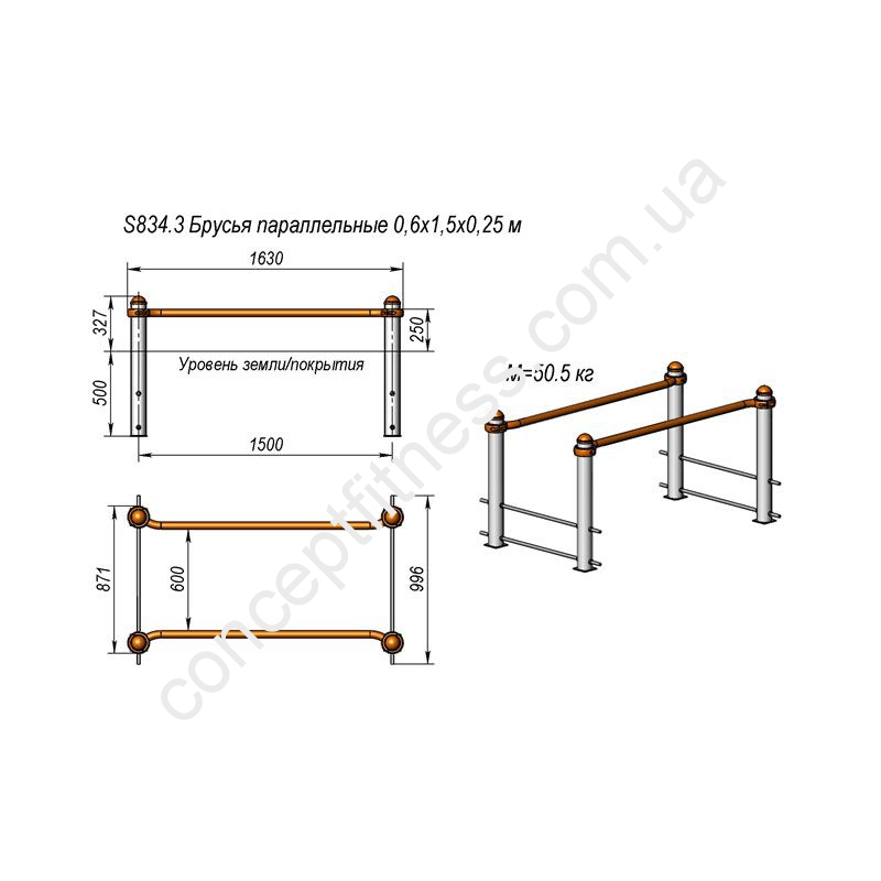 Сучасний силовий елемент для занять Workout Інтератлетика, арт. S834.3 продуманий і виконаний за останніми технологіями, монтується на універсальну заставну. Регулярні заняття на брусах допоможуть урізноманітнити нудні походи на вулицю, розвинути витривалість, динамічність, силу волі користувачів будь-яких вікових категорій, прищепити любов і особливий інтерес до спорту. Модель пофарбована водовідштовхувальним, порошково-полімерною фарбою, відтягуються корозійний процес.