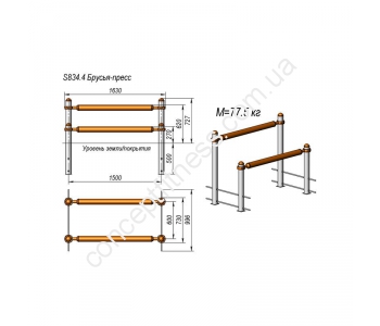 Бруси-прес InterAtletika S834.4 рекомендовані дівчатам, які бажають набути бездоганну фізичну форму. Регулярні заняття на тренажері допоможуть урізноманітнити нудні походи на вулицю, розвинути витривалість, динамічність, силу волі спортсменів будь-яких вікових категорій, прищепити любов і інтерес до спорту, фізкультури. Зміцнення верхніх елементів здійснюється спеціальними зажимами. Встановлюються в приватних секторах, громадських місцях і стадіонах, поблизу спортивних шкіл і бійцівських клубів.