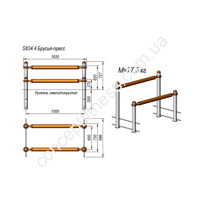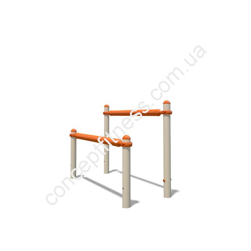 Багатофункціональний елемент для занять Workout Інтератлетика, арт. S834.4 підійде для нижнього і верхнього преса, зміцнення стегон, сідниць з подальшим формуванням стрункої фігури. Поверхня пофарбована порошковою фарбою з полімерним складом, допоможе відтягнути розвиток корозії. Загальна вага брусів не перевищує 80 кг, зроблені з довговічних матеріалів.