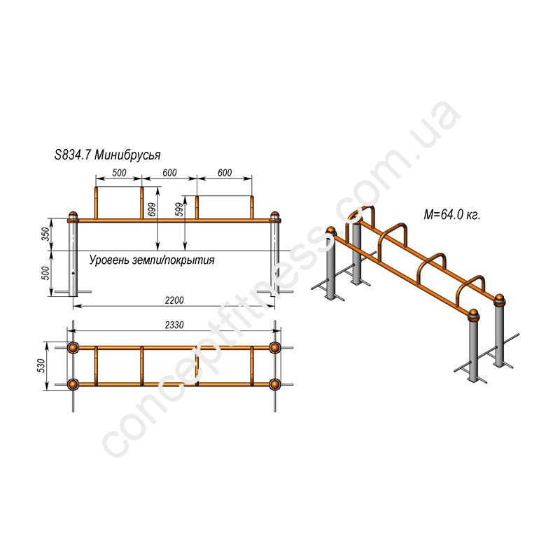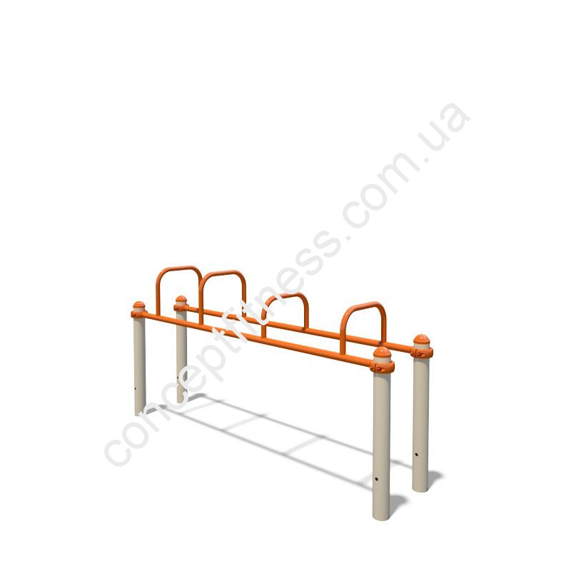 Комплексний елемент для занять Workout Інтератлетика, арт. S834.7 важить всього 64 кг, підійде для дорослих і дітей, доповнить стадіони, школи, вуличні двори і приватний сектор. Устаткування підійде для людей, охочих дістати бездоганну фізичну форму. Бруси зміцнять основні м'язи груп рук, шиї, спини і черевного відділу.