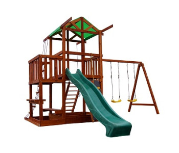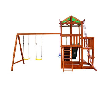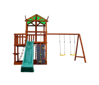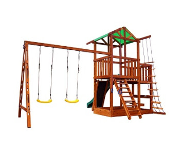 Комплекс для ігор на вулиці СпортБебі, модель Babyland-5 включає в себе безліч цікавого і корисного інвентарю: 3 м гірка, парні гойдалки, будиночок з дахом, мотузкові сходи, міцний канат, гора юного скелелаза і інтелектуальна пісочниця. Майданчик для ігор надовго займе малюків, подарує незабутні хвилини життя, допоможе з користю організувати відпочинок. Комплекс комфортний і практичний в експлуатації, популярний серед дітей 6-14 лет.