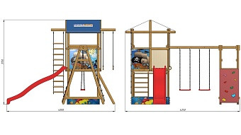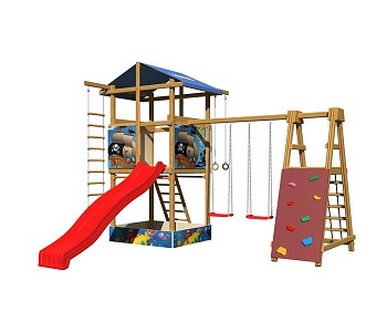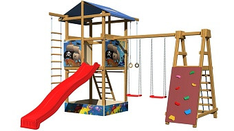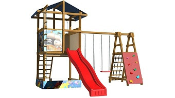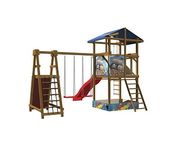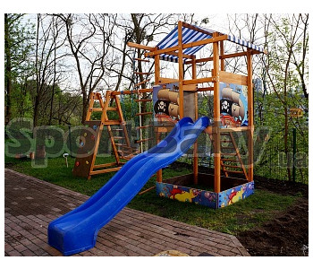 Дитячий майданчик Sportbaby-9 виробляється з натуральних деревних матеріалів ndash; сосни, покритої спеціальним антисептиком, що не викликає подразнень. Піратська сходи розвиває еластичність і силу м'язів рук, ніг і преса, а гімнастичні кільця покращують хват руками. Модель є оптимальним тренажерним комплексом, що дозволяє привчити дітей до спорту і паралельно гарненько відпочити на свіжому повітрі.