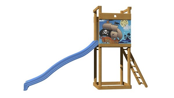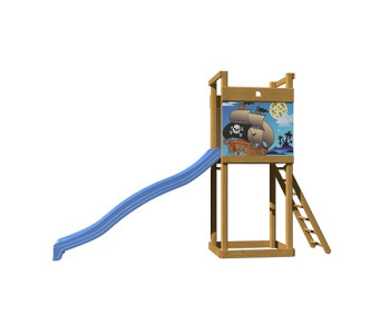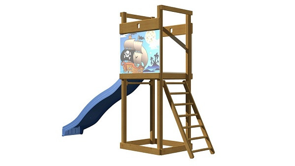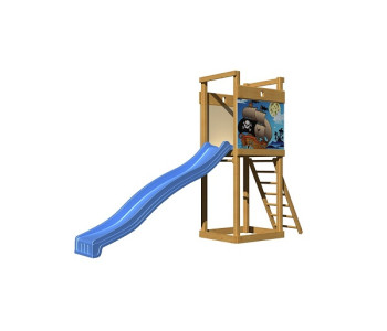 Дерев'яний вуличний комплекс СпортБебі, модель СпортБебі-2 складається з найнеобхіднішого: сходової клітки, яка гірки для спуску. Майданчик розроблена конструкторами для розташування на невеликих ділянках, як доповнюючий елемент баз відпочинку, пансіонатів, шкіл, садочків, дворів і громадських місць. Невеликі габарити дозволяють встановити майданчик абсолютно на будь-якій ділянці, не маючи практичних навичок і спеціальних інструментів. Батьки можуть не хвилюватися за безпеку своїх чад, а все завдяки відсутності гострих кутів і гладкій поверхні.