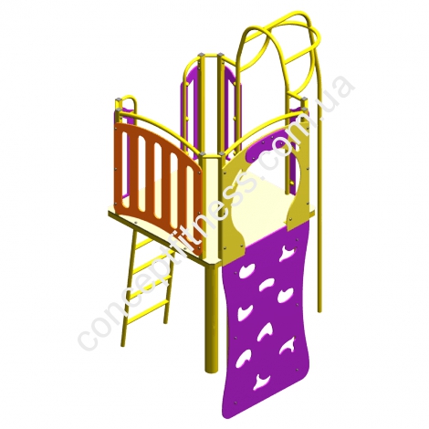 Вулична дитячий майданчик Елефант, модель Скелелаз KH1-1 складається зі стіни для скелелазіння, турніка для посилення м'язів рук, драбинки для підняття. Регулярні відвідування комплексу підніме настрій у малюків, сприятиме розвитку сили, координації і витривалості. Модель створена ексклюзивно для дачного розміщення, хоча це не заважає її встановити в садках, поблизу шкіл та громадських дворов.