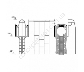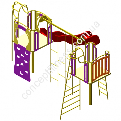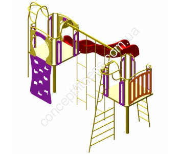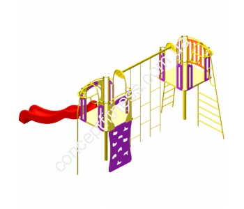 Вулична дитячий майданчик Елефант, модель Альпініст KH 1-6 елегантно і гармонійно буде виглядати в міських і заміських умовах. Подібний комплекс встановлюється на дачі, пансіонаті, ресторанних майданчиках, вуличних дворах і громадських місцях. Майданчик розроблена для діточок 6-12 років, не вимагає особливих навичок, інструментів при установці. Модель створена для активних ігор на вулиці, фізичного і інтелектуального розвитку дітей.