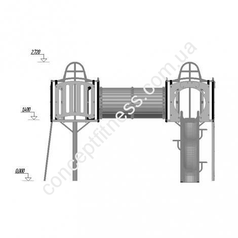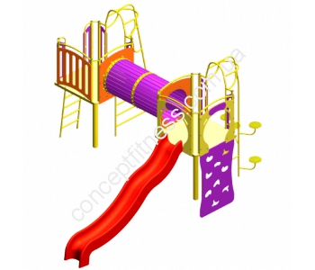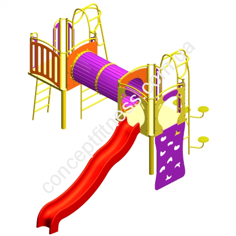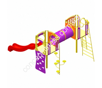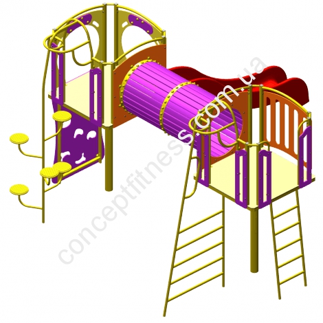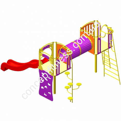 Ігровий комплекс Elephant Тунель KH 1-7 створений для активних ігор на вулиці, фізичного і інтелектуального розвитку дітей. Майданчик розроблена для діточок 6-12 років, не вимагає особливих навичок, інструментів при установці. Устаткування елегантно і гармонійно буде виглядати в міських і заміських умовах. Батьки можуть відпочити після роботи і зовсім не хвилюватися за безпеку своїх чад, а відсутність гострих кутів знизить ймовірність отримання травм. До складу моделі включено гвинтові сходи-сходинка, тунель-барабан, оглядовий майданчик, Лазалка, гірка і скалолазка.