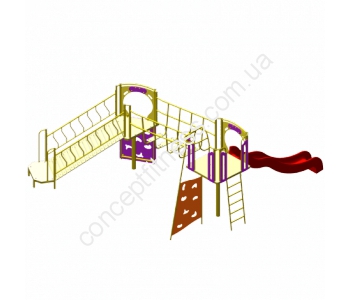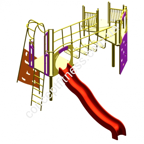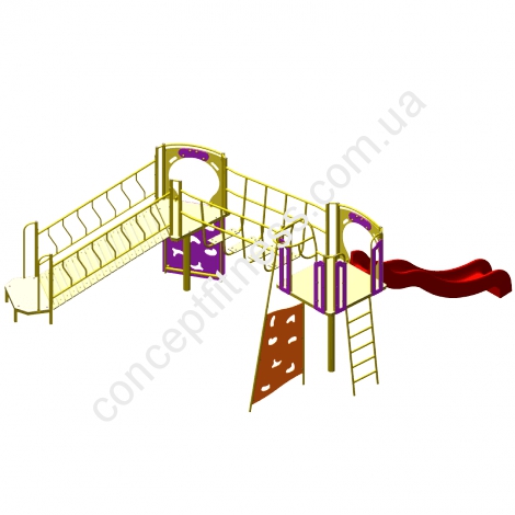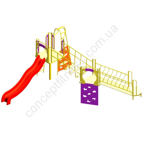 Сучасний елемент ігрових зон Елефант, модель Міст KH 1-8 особливо популярний серед рухливих, веселих дітей, розроблений для віку 6-12 років. В основі виробництва лежать якісні, металеві складові, з'єднані між собою і пофарбовані порошковою фарбою. Комплекс складається з драбинки, гірки з бортиками, перекладин, Скелелазка і різних оглядових майданчиків. Батьки можуть відпочити після роботи і зовсім не хвилюватися за безпеку своїх чад, а відсутність гострих кутів знизить ймовірність отримання травм.