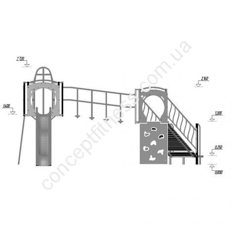 Ігровий комплекс для дітей Elephant Міст KH 1-8 встановлюється на дачі, пляжах, дитячих садках. Інвентар відповідає всім норма безпеки, довговічний, стійкий до атмосферних впливів, механічного зносу. Регулярні заняття зміцнюють м'язи, формують сильний імунітет, розвивають спритність і витривалість, нормалізують вестибулярний апарат. Устаткування елегантно і гармонійно буде виглядати в міських і заміських умовах.