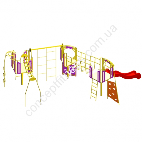 Комплекс Elephant Мрія альпініста KH 1-13 являє собою невеликий тренувальний табір, де крім веселощів можна гарненько розім'яти м'язи рук, ніг, зміцнити прес. Модель розроблена для непосид 6-12 років, особливо популярна серед рухливих, веселих дітей. Містечко складається з гірки, скалолазок, довгого рукохіду, бічних і прямих драбинок, турніки і прямих труб. Комплекс розроблений з міцних, абсолютно нешкідливих для здоров'я елементів: вологостійкої фанери і сталі.