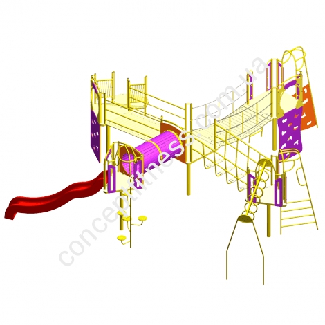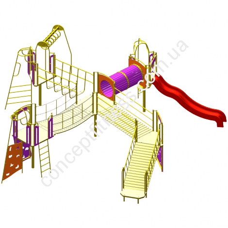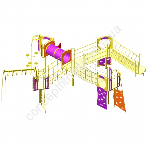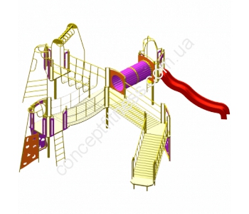 Ігровий комплекс Elephant Мандрівник KH 1-17 вражає своєю уявою, видом і стилем дітей і дорослих. Яскраві, різноманітні і формені елементи дозволять насолодитися грою на свіжому повітрі, поспілкуватися з однолітками. Метал стійкий до механічних впливів і температурних перепадів, пофарбований порошковою фарбою. Майданчик розроблена для непосид 6-12 років, особливо популярна серед рухливих, веселих дітей. Інвентар складається з рукоходів, турніки, гірок з бортиками, стінок для скелелазіння, тунелів, драбинок і платформ.