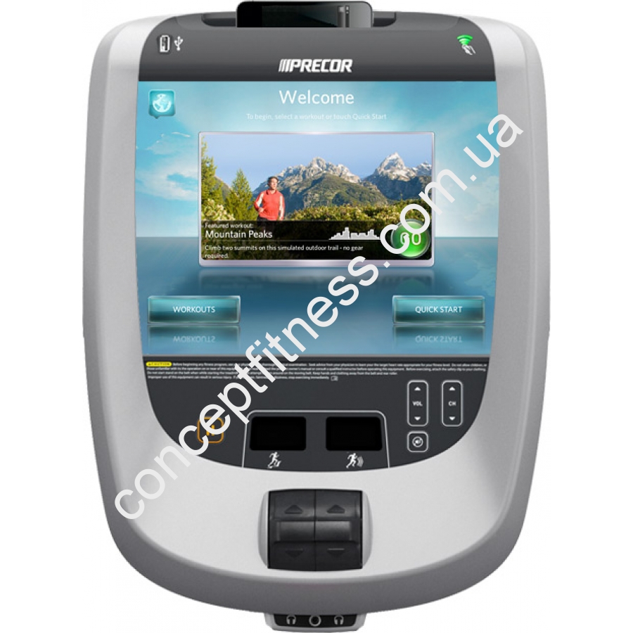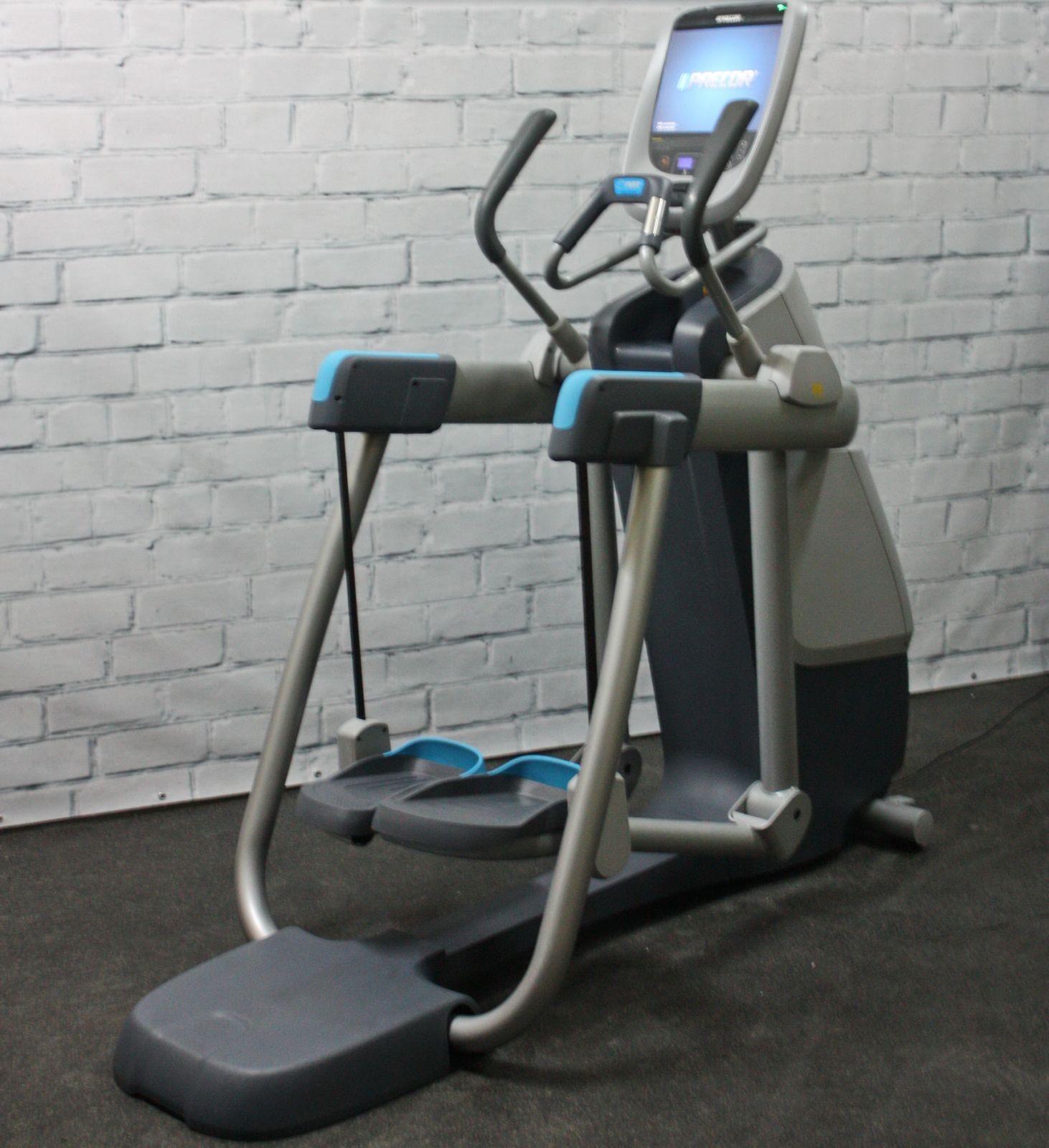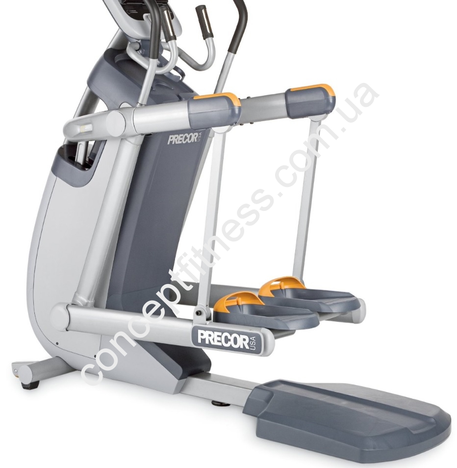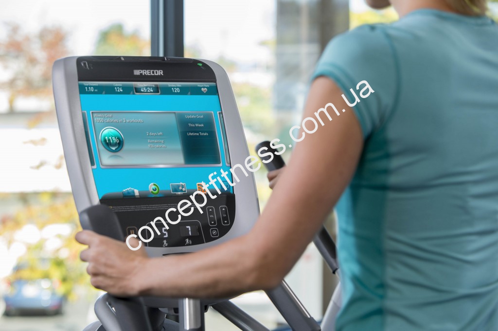 Адаптивний тренажер Precor AMT885 з ємнісний консоллю quot; тач скрінquot; топової серії P80, артикул моделі AMT 100i, виділяється можливість регулювання довжини кроку, ідеально читає всі рухи користувача. На орбітреки можна виконувати руху для верхньої і нижньої частини тіла. Плавність обертання і ходу забезпечує підшипникова група, а держатель для пляшок додасть комфорту моделі.