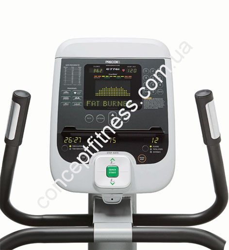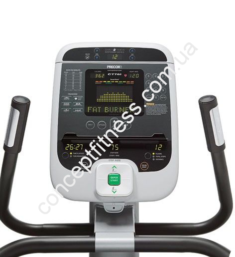 Степпер Precor 776i проведений з міцного сталевого сплаву, має алюмінієві педалі, стійкий до іржі і іншим впливам атмосферного впливу. Граничне навантаження 159 кг, харчується автономно. Багатомовний інтерфейс, сумісність з багатьма ПО, що виводить степпер в лідери продажів. Степпер рекомендований при відновлювальної фізкультури, ранкової гімнастики і професійних занять.