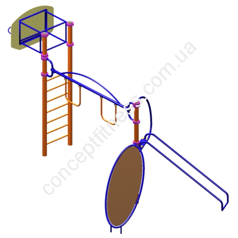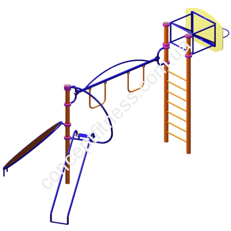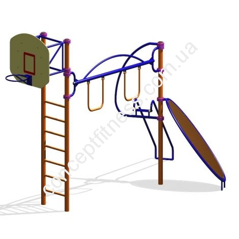 Багатофункціональний куточок для вулиць Елефант, артикул КГ-03 дозволяє не тільки підтягнутися, віджатися, прокачати прес, а також зіграти з однолітками в баскетбол. Модель виконана з надійного і довговічного сталевого сплаву, легко ставитися на заставну. Комплекс рекомендований для сімейного фізкультури, відновної гімнастики і післяопераційного відновлення. Обладнання не дозволить нудьгувати дітям, тут передбачено все для активного відпочинку, розвитку сили, витривалості та формування координації.