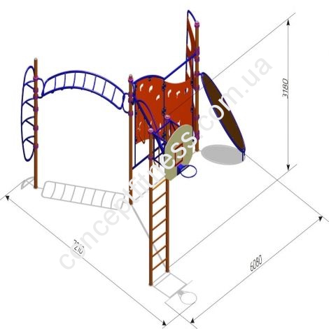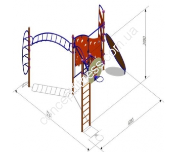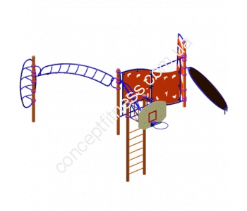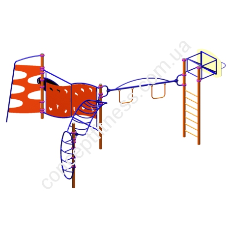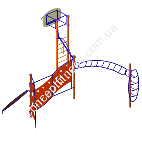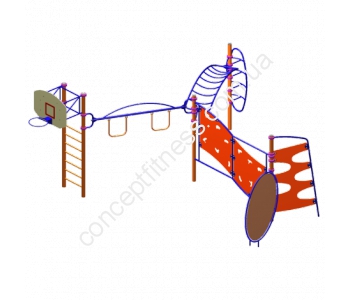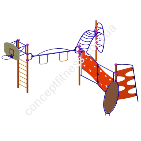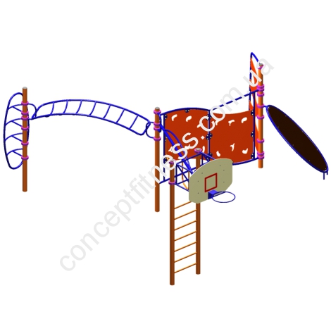 Гімнастичний комплекс Elephant КГ-05 пофарбований порошковою фарбою, виконаний з надійного і якісного сталевого сплаву. Модель гармонійно виглядатиме на загальних дворах, заміських особняках і пансіонатах. На комплексі є кільце для баскетболу, стіна для скелелазіння, дошка для прокачування преса, шведська стінка, гнуті сходи, рукоходи та інший інвентар. Відвідуючи комплекс, малюки розвивають руки, ноги, прес, поперек, зміцнюють суглоби і опорно-руховий апарат.