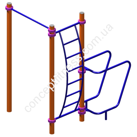 Спортивний комплекс Elephant КС-03 перетворить регулярні відвідування в захоплюючі пригоди, паралельно зміцнить прес, спину, руки, ноги, суглоби і вестибулярний апарат. Модель рекомендована користувачам від 12 років і включає гнуту шведську стінку, турнік для підтягування з брусами для преса. На комплексі розвивається сила, витривалість, координація, формується постава і здоровий дух.