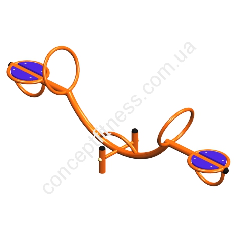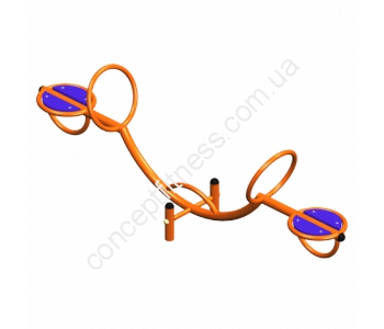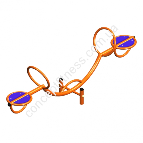 Двомісне обладнання для катання Елефант, артикул Б-1 не скріпить і не тріщить, забарвлюється порошковою фарбою. Сидіння розділене на дві частини, проводиться з дерев'яних брусів. Гойдалка виконана зі сталевого круглого профілю оптимальної товщини. Підстава встановлюється на бетонну заставну, а регулярні коливання зміцнюють імунітет, спини і поперек.