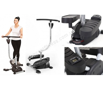 Тренажер Cardio Twister оснащується рельєфними, протівоскользящімі педалями, має сталеву раму, комфортабельні і м'які рукоятки. Модель важить всього лише 16 кг, а витримує до 113 кг навантаження. Після бездіяльності тренажер вимкнутися самостійно. Регулярні вправи підвищать витривалість, силу, координацію і еластичність м'язової групи, сприяють розвитку витривалості, прискорюють метаболічні процеси. Унікальний степпер-твістер замінить одночасно кілька тренажерів, заощадить гроші і час на походи в тренажерні центри. Функціональності надає цифровий дисплей, що відображає кількість кроків, витрачений час на вправи, обсяг спалених калорій, а також вибір 7 рівнів навантаження. Тренажер допоможе ефективно скинути жир, надмірна вага, нормалізувати кровообіг і серцевий ритм.
