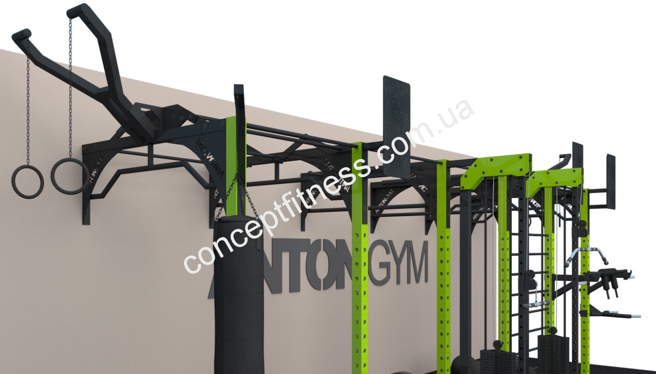Силова рама для кроссфіта AntonGym Crossfit представляють собою конструктор, який можна доповнювати елементами в залежності від потреб. Дана розробка включає в себе два грузоблочних тренажера (кросовера). Компанія AntonGym єдиний виробник універсальних функціональних рам для Crossfit тренувань. Універсальність полягає в технології виготовлення і раціональності збірки. Всі моделі функціональних рам розбірні і мають можливість доповнення до них різних елементів, в залежності від бажання покупця. Комплектуючі елементи взаємозамінні і доповнюваності, тобто одна і та ж рама може збиратися і дозбираються в різних варіаціях по перевазі фітнес-інструктора. Каркас рами виготовлений з профільної труби згідно з ГОСТ 8639-82; Модель функціональної рамки створювалася з урахуванням особливостей тренувань Crossfit. Диски, грифа, ручки, мішки і кільця не входять в стандартну комплектацію. Завдяки верстату для плазмового різання на рамці для Кроссфіта ви можете замовити будь-який напис, наприклад. назва, клубу. Час на виготовлення - 30 календарних днів.