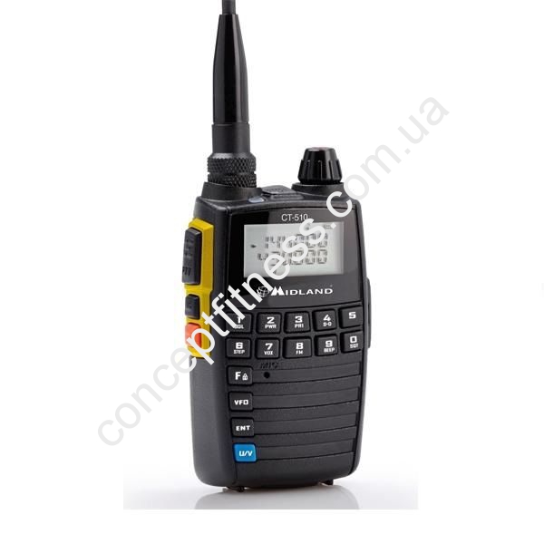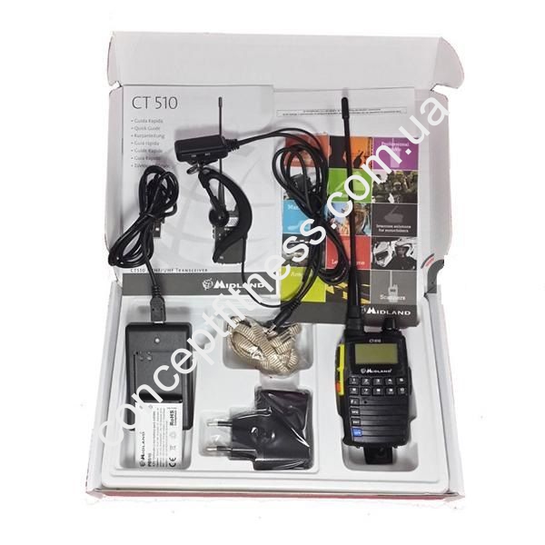 Мініатюрна аналогова радіостанція Мидланд, артикул CT-510 має міцний корпус, гарантує стійкий і чистий сигнал, придушення шумів в момент розмови. На дисплеї відображається смуга частоти, номер каналу, назва. Головною відмінністю моделі є ФМ-приймач, системи VOXі VOICЕ, ретрансляція, скремблер і кнопка СОС.