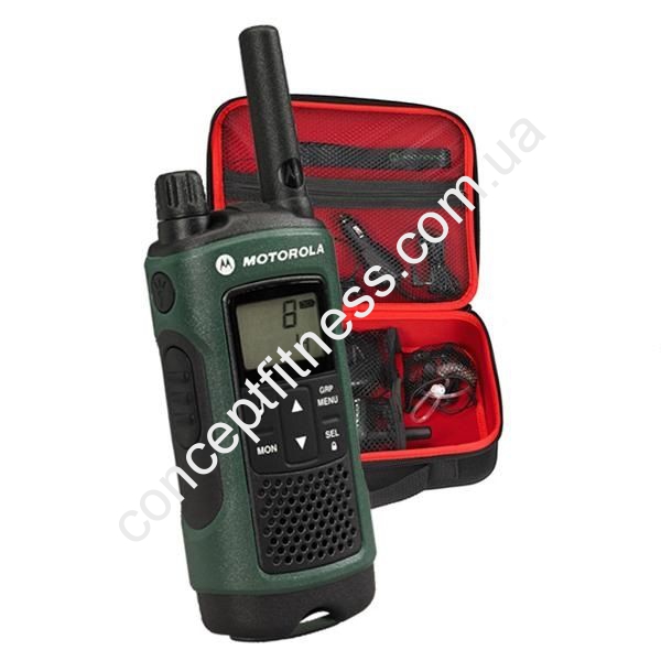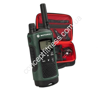 Рація носимая Motorola TLKR T81 Hunter невеликого розміру, легко влізе в штани або кишеню сорочки. Корпус вологозахисний, антена потужна, бере в радіусі 10 км, допоможе в орієнтуванні в лісі, полях і горах. Заряду батареї вистачає на 6-8 годин роботи, а зручна опція радіо-няня допомагає тримати під контролем будь-яке приміщення.