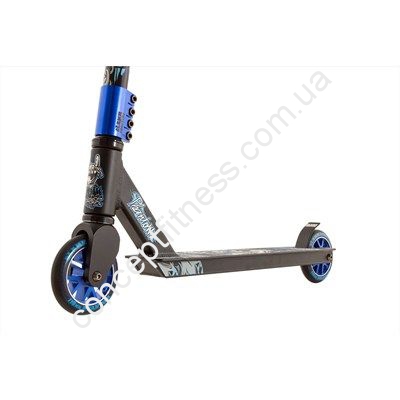 Самокат Slamm Phantom Blue SL420 8347998 рекомендований дітям від 7 років і старше, максимальне навантаження на деку не повинна перевищувати 70 кг. На моделі можна виконати найнебезпечніші, акробатичні трюки. Додаткового комфорту надають м'які рукоятки, регульований кермо, анодовані диски з 11 см колесами і гальма, типу ABEC9.