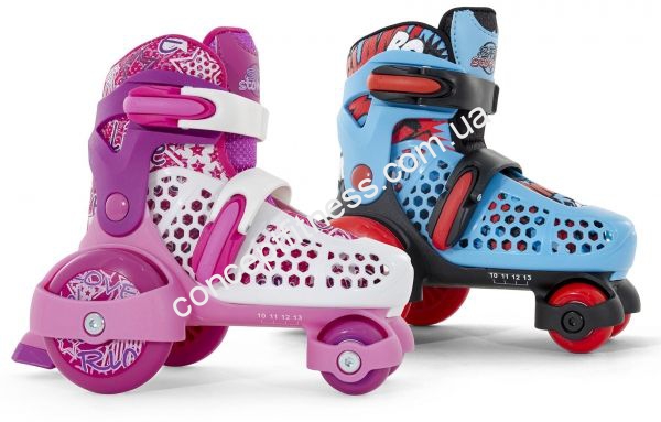 Роликові ковзани SFR Stomper girls 344905 виховують зірок хокею і фігурного катання. Катанія розвивають дитячий організм, формує поставу, налагоджує роботу вестибулярного апарату. Розсувний конструкції вистачить на 3-5 розмірів, а силіконові колеса чудово проходять нерівні ділянки на алеях і тротуарах.