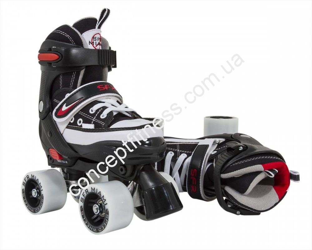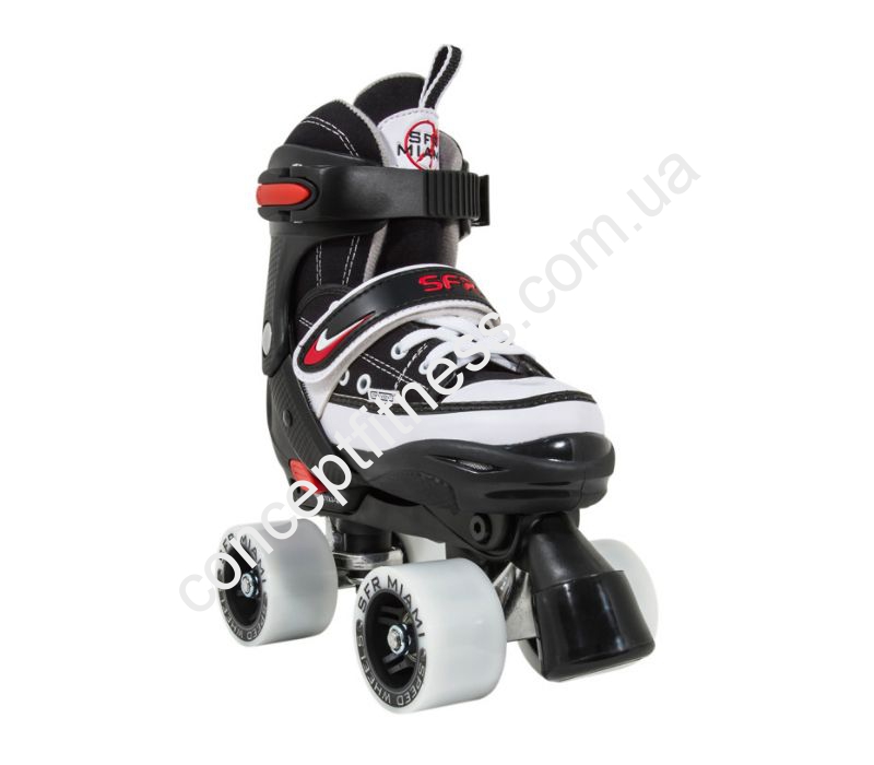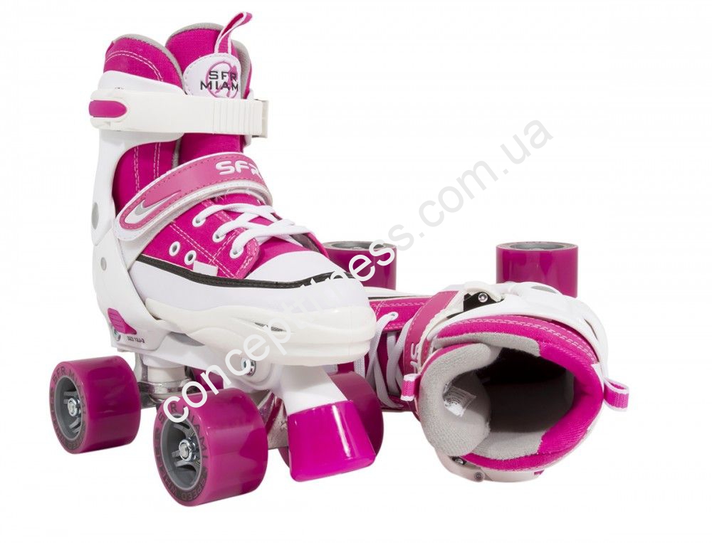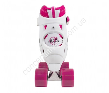 Ролики розсувного типу СФР Майямі, артикул RS185 ростуть разом з юними Непосєдов, представлений в рожевому і чорному відтінку. Модель допоможе виховати нових олімпійських чемпіонів, зірок фігурного катання і світового хокею. Ролики з двухосной платформою і різним розташуванням коліс створюють хорошу стійкість.
