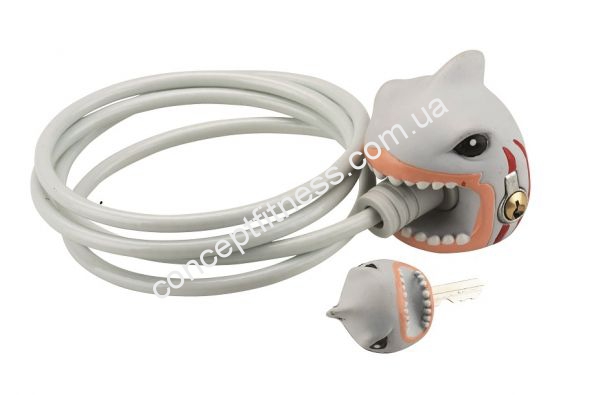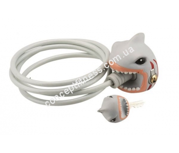 Замок тросовий Crazy Safety White Shark 240160-20 складається з колодки в формі акули, сталевого троса в оплетке і декількох ключів, виконаних з пластика. Щоб уникнути пошкоджень рами виробник передбачив гумову оплетку. Замок гарантує повноцінний захист і нівелює крадіжки велосипедного інвентарю поблизу майданчиків, торгових центрів і магазинів. Загальна довжина троса не перевищує 120 см, а легка вага і габарити дозволяють скласти їх в сумочку або бардачок байка.