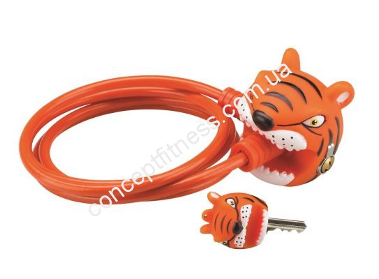 Інвентар для захисту від угону байка в формі тигра Крейзі Сафеті, артикул 240100-20 не займає багато місця в сумочці, рюкзаку велосипедиста. Щоб уникнути пошкоджень рами виробник передбачив гумову оплетку. Замок ndash; необхідна частина атрибутики мандрівника, він сподобаються хлопчикам і дівчаткам, вони можуть вибрати накладки з різними звірятками.