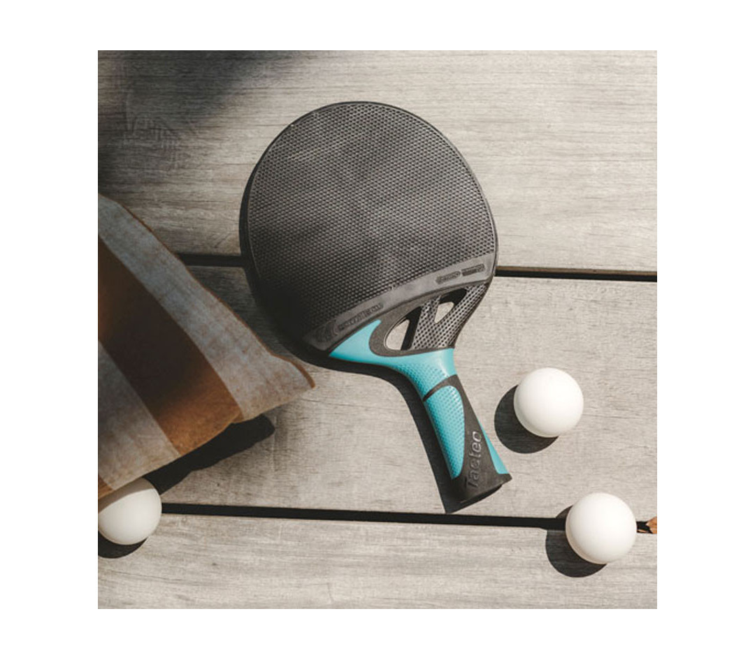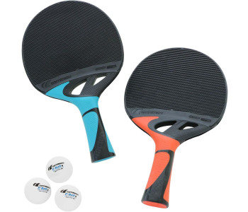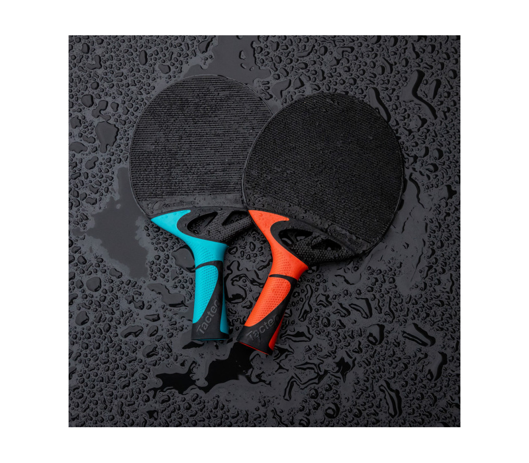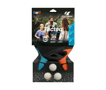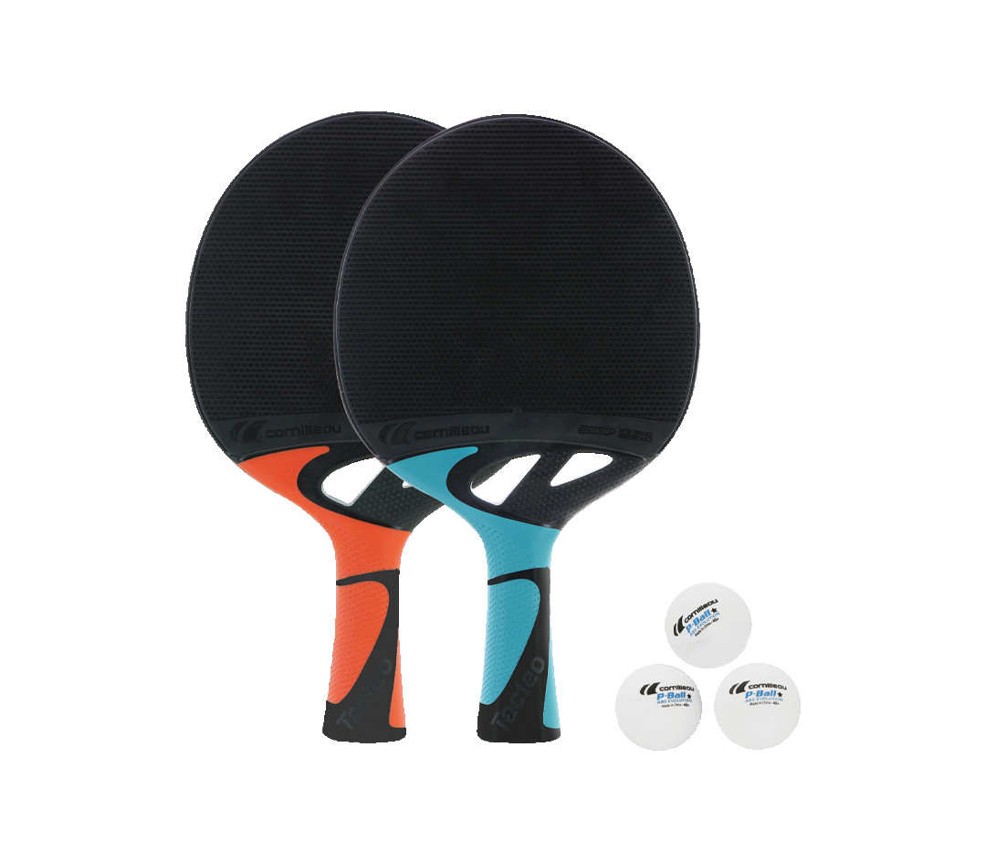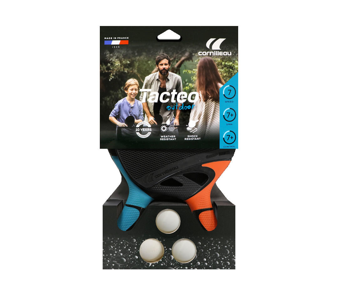 Цей набір включає в себе дві всепогодних ракетки для настільного тенісу Cornilleau Tacteo 50 і три кульки Cornilleau. Ракетки зроблені з повністю погодостійких матеріалів і розраховані на інтенсивне використання. Є анатомічна ручка.