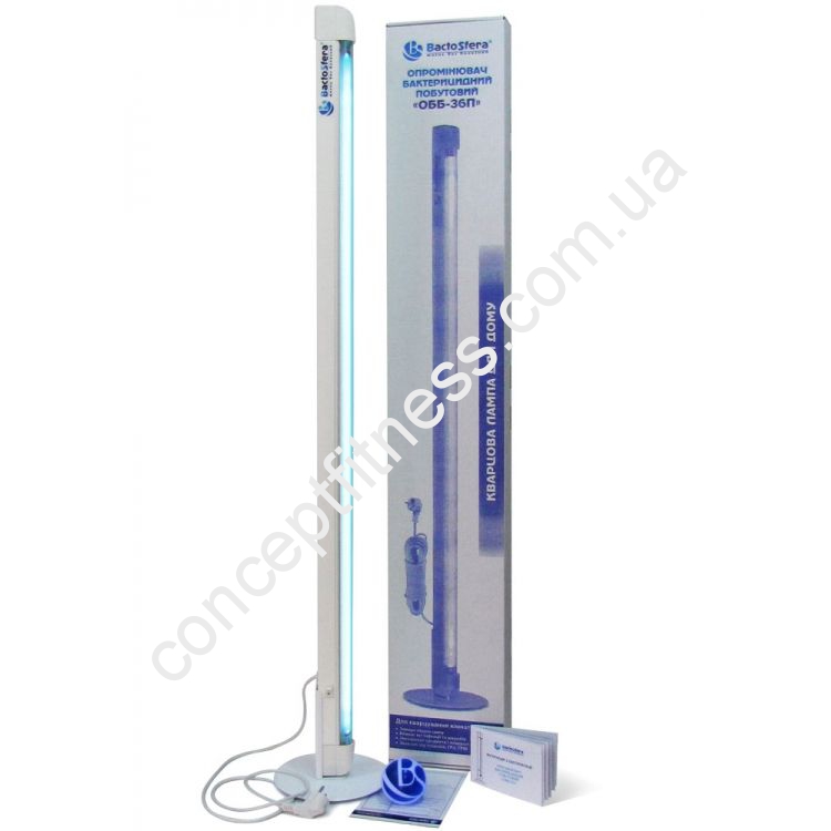 Бактерицидний опромінювач BactoSfera OBB 36P Ozone Free вбиває всі віруси грипу, інфекції, бактерії, руйнує молекули ДНК на початковій стадії. Вага зі стійкою до 2,5 кг, висота 1,2 метра, представлена лампа в білому кольорі. Лампу встановлюють на широку, 20 см сталеву підставку, щоб уникнути перекидання. Прилад оснащується повним пакетом необхідної документації: сертифікатами, свідоцтвами, висновками СЕС, пройшов лабораторні випробування. Лампа популярна в медицині, побуті, офісі, промисловості та спорті. У момент піку захворювань слід кварцевать щодня по 30 хвилин кімнати.