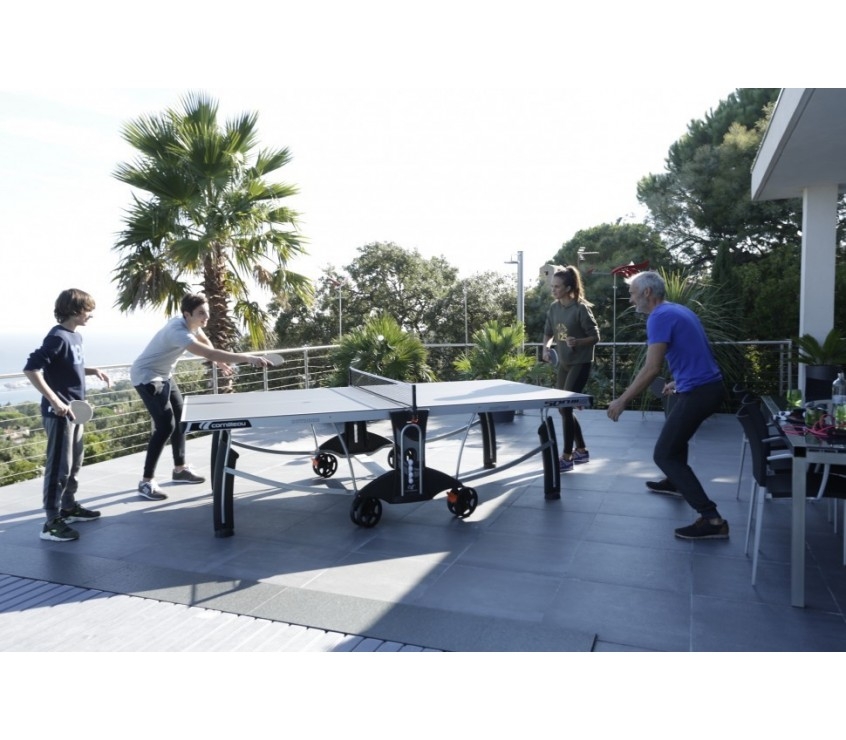Всепогодний тенісний стіл Crossover 500m є верхнім в лінійці серії Sport. Ідеальний варіант для застосування в вуличних умовах. Товщина стільниці 7 мм максимально наближає відскік кульки до дерев'яних столів.