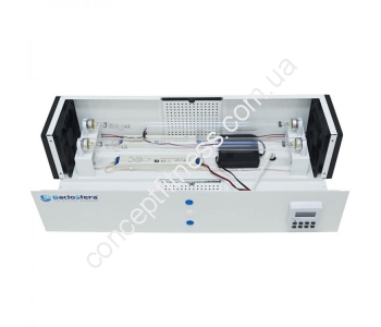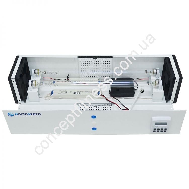 Принцип роботи простий і безпечний: повітря проходить через корпус пристрою за допомогою вентиляторів і обробляється ультрафіолетовою бактерицидною лампою всередині. Закрита конструкція рециркулятора виключає вихід шкідливого УФ-випромінювання назовні, що дозволяє людям перебувати в приміщенні під час роботи приладу.