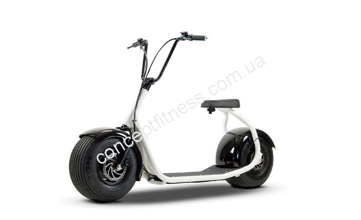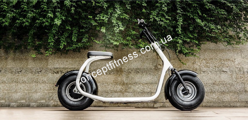 Стильний і універсальний електросамокат Моісеєвим, артикул EB-01415 комплектується широкими колесами, виділяється унікальним дизайном. Все заточене під мінімалізм, футуристичні ідеї запозичені у відомих мотоциклетних брендів. Рама виконана за методом лазерного зварювання, в міру жорстка, що не пружинить на різких поворотах. Власник такого коня не потребує регулярних ТО і витратах на паливо, виключно розетка і навігатор по маршруту.