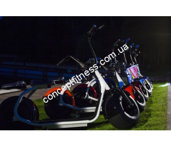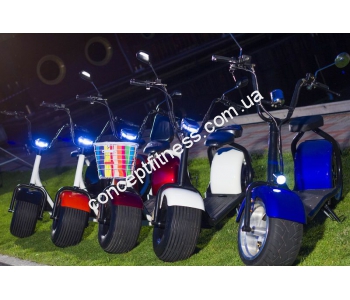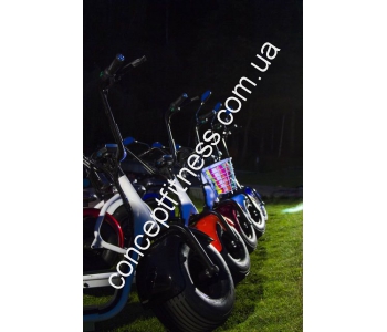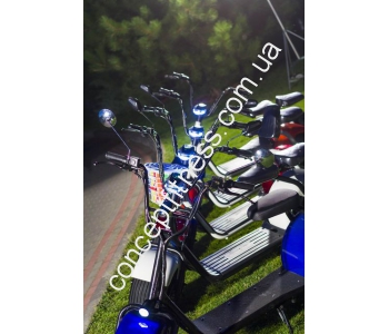 Електроскутер Seev Citycoco1500W EB-0349 виготовлений за способом лазерного зварювання, в міру жорстка, що не пружинить на різких поворотах, виняткові замети. В даній моделі все засновано на мінімалізмі, а футуристичні ідеї запозичені у відомих мотоциклетних брендів. Електробайк з легкістю можна експлуатувати від -10 до +40. У темний час доби дорогу висвітлює LED-фара. Модель поєднує в собі мотоцикл, мопед і скутер, а управляти її одне задоволення. Потужний, 1,5 кВт мотор розвиває швидкість до 35 км /год, а на одному заряді можна проїхати до 80 км. Комфортабельне сидіння пошито з зносостійкого синтетичної шкіри, відштовхує вологу, довжини вистачить, щоб вмістити 2-х дорослих або 3-х дітей.
