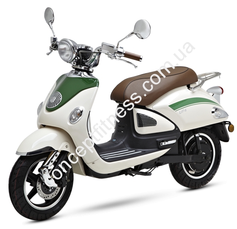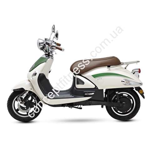 Двомісний стильний мопед з електромотором ЮгБест УФ4, артикул EB-0370 має хороші тяглові властивості, динамічний розгін, м'яке гальмування, технічні характеристики і класний дизайн. На одній зарядці можна проїхати до 60 км. Модель не потребує регулярного технічного обслуговування, в порівнянні з мотоциклами і бензиновими скутерами. Байк з чудовим накатом, м'яким і довгим сидінням припаде до душі багатьом, особливо молодежі.