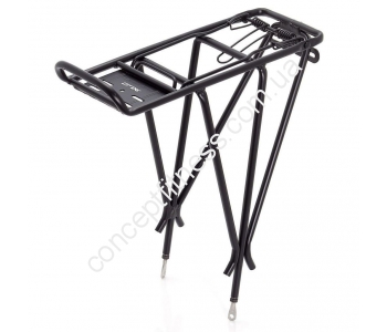 Багажник XLC PR-R04, 26-29 чорний EB-0582 оснащується пружиною з затискачем, фіксується болтами до рами, максимальне навантаження 25 кг. На такому інвентарі можна перевозити особисті речі, продукти, туристичну палатку, каремати та інші предмети. Попереду багажника розташований бортик, щоб уникнути ковзання.