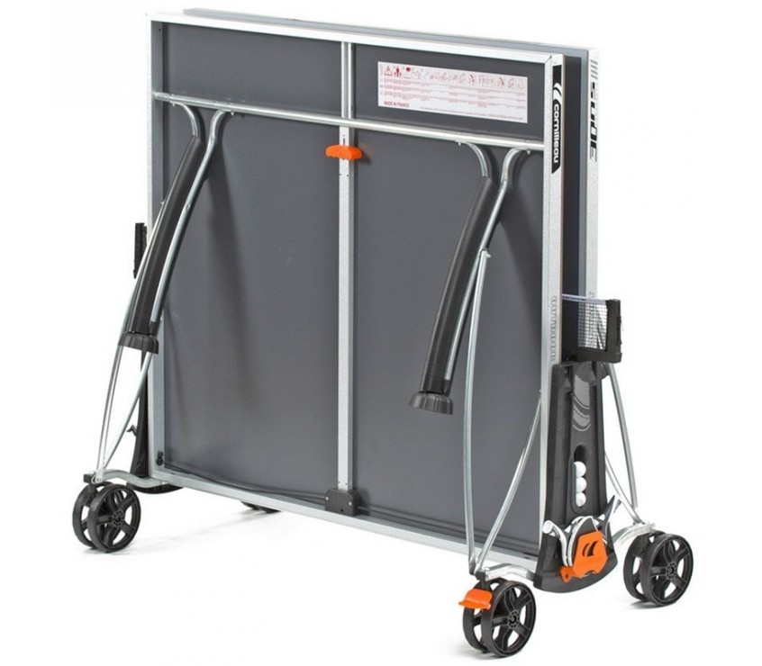 Система складання COMPACT TECHNOLOGY®, розроблена Cornilleau, знижує ризик втрати рівноваги столу. Це також запобігає проникненню дітей між панелями в положенні для зберігання та полегшує відкриття та закриття столу. У складеному вигляді він має подвійну перевагу: він менш громіздкий, ніж стандартний стіл, і легше у користуванні.