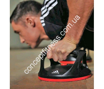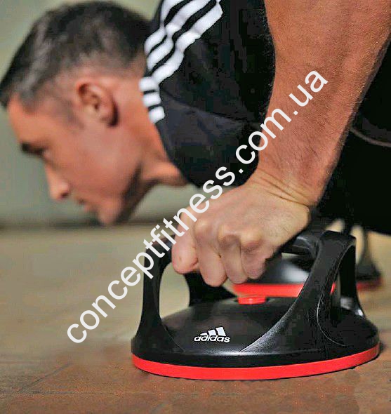 Упори для віджимань поворотні Adidas ADAC-11401 можна експлуатувати в 2-х режимах: поворотному і стаціонарному. Диски обертаються і одночасно тренують кисті рук в лежачому положенні. Разом з тим інвентар розвантажує плечовий суглоб, знижує ймовірність розтягувань, вивихів та іншого травматизму кінцівок. Регулярні тренування призведе форму в норму, повернуть привабливість і сексапільність, допоможуть ефективно підготуватися до пляжного курорту, приберуть зайву вагу. Віджимання чудово розвиває м'язи верхнього плечового пояса, черевний прес, грудної і шийний відділ, займаються формування постави.