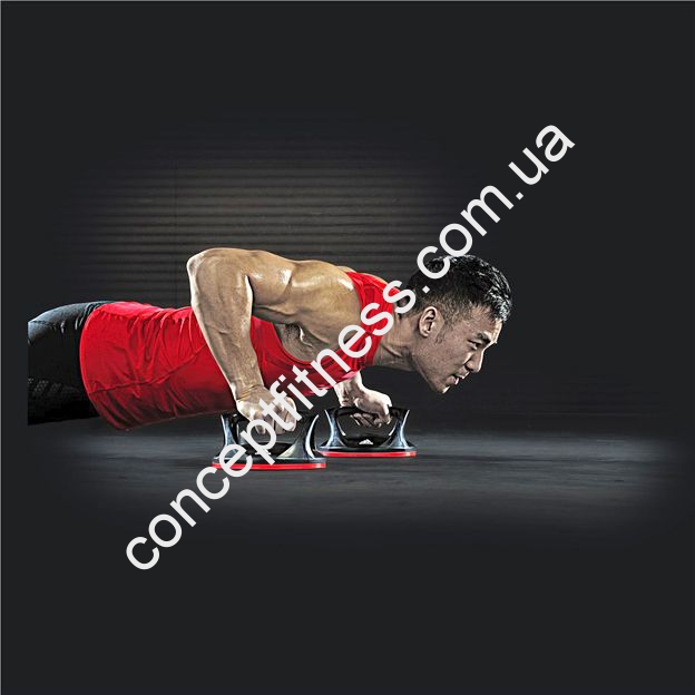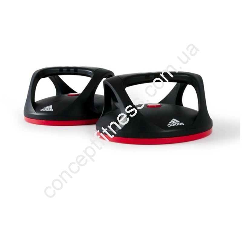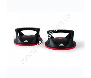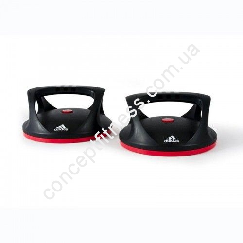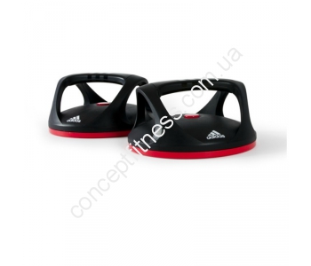 Стильний, нековзний інвентар для віджимань Адідас, артикул ADAC-11401 розвиває корпус і верхню частину торса спортсмена. Основна мета опор ndash; зміцнення зв'язок, поліпшення координації, підняття тонусу м'язів. Устаткування використовується при фітнесі, аеробіці, спортивної гімнастики. Ефективність віджимань безпосередньо залежить від стійкості опор, а спеціальні накладки перешкоджають ковзанню по підлозі. Упори активно розвивають дельтовидні м'язи, трицепс, біцепс, груди, тримають в постійному навантаженні прес. Модель виготовляється з АБС-пластика, гуми і сталі.